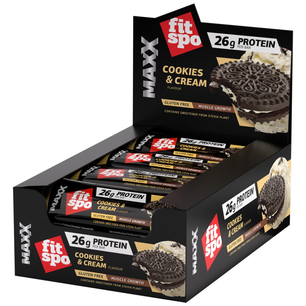 - **Високо съдържание на протеин:** С 20 грама протеин на бар, Fit Spo MAXX Bar подпомага мускулния растеж и възстановяване, особено след интензивни тренировки.
