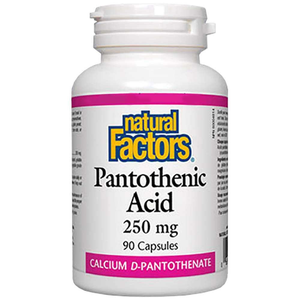 Natural Factors Pantothenic Acid 250 mg е висококачествена хранителна добавка, създадена да подпомогне вашето здраве и благополучие. Пантотеновата киселина, известна още като витамин B5, е водоразтворим витамин от група B, който играе ключова роля в множество биологични процеси. Този продукт е формулиран под формата на лесни за поглъщане капсули, които осигуряват оптимална абсорбция и ефективност.
