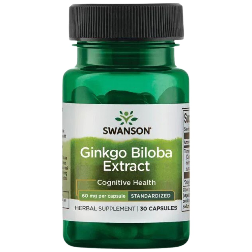 **Swanson Ginkgo Biloba Extract 60 mg** е висококачествена хранителна добавка, съдържаща екстракт от листата на гинко билоба, известен със своите ползи за мозъчната функция, паметта и кръвообращението.