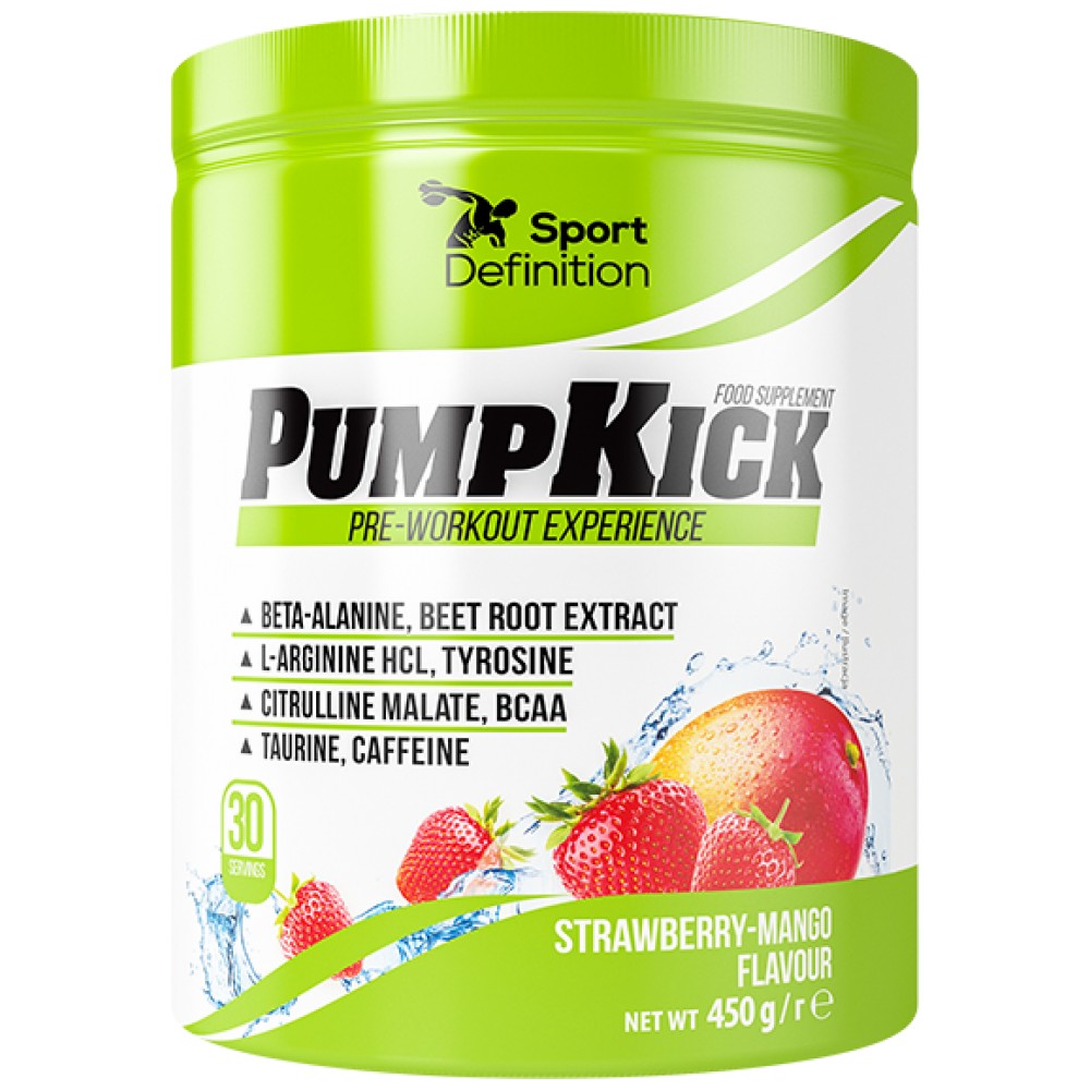 Pump Kick е модерен предтренировъчен продукт, базиран на висококачествен бета-аланин, екстракт от червено цвекло, тирозин, цитрулин малат и таурин. Допълнен със солидно количество верижноразклонени аминокиселини, предпазващи мускулите от изпадане в катаболно състояние и скъсяващи времето за възстановяване. Добавените витамини във формулата (С, В6 и В12) подпомагат поддържането на нормален енергиен метаболизъм, подобряват имунната система и допринасят за потискането на умората.