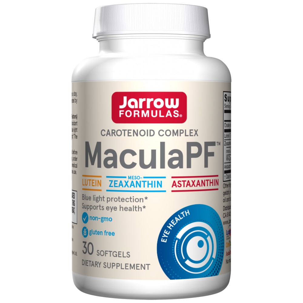 Jarrow Formulas® MaculaPF™ (Protective Factors) е синергична комбинация от три ключови антиоксидантни каротеноиди за поддържане на макулите на очите при синя светлина от всички видове екрани, LED осветление и слънчева светлина.* Макулата е отговорна за фокуса и цвета.