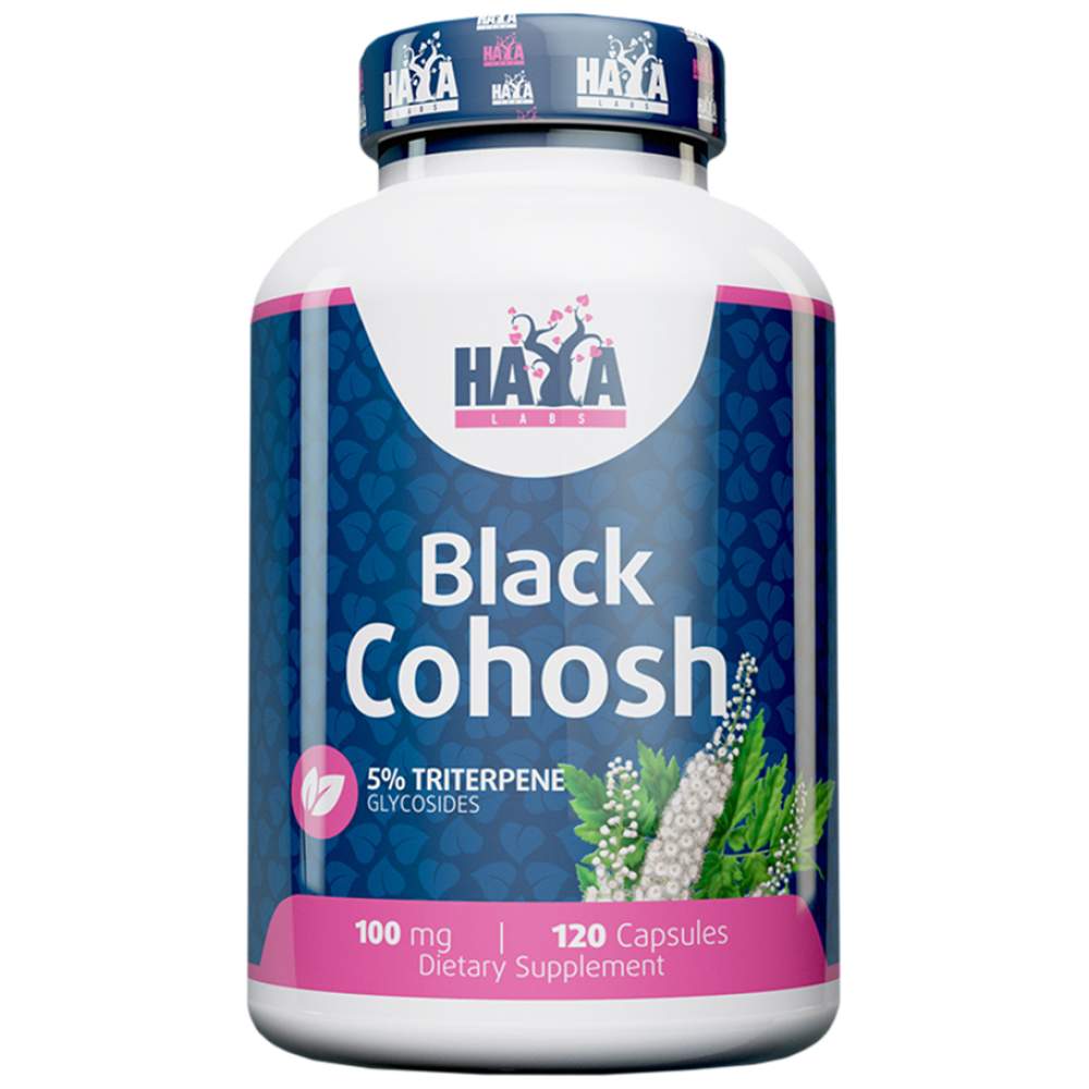 HAYA Labs Black Cohosh 100mg е стандартизиран до 2.5% (или 2.5mg) тритерпен гликозиди и се предлага в опаковка от 120 вегетариански капсули.