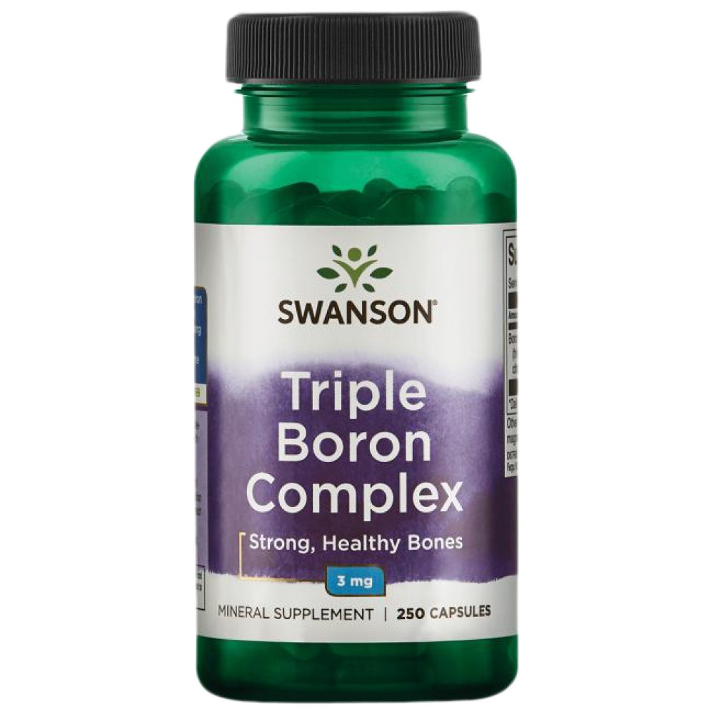 Тройният комплекс борон на Суонсън е изключително ефективно средство за здравето на костите. Тази формула доставя важни минерали за здравето на костите, които обикновено трудно се набавят с храната. Настоящата формула съчетава три форми на борон (цитрат, аспартат и глицинат) за максимална бионаличност
