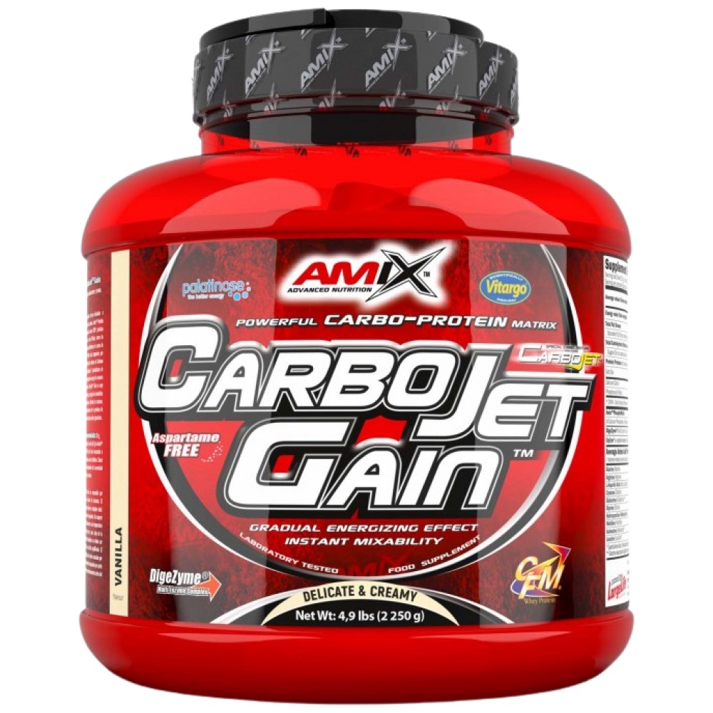 Amix CarboJet Gain е изключително подходящ за активни хора, които се нуждаят от изключително висококачествена протеинова смес и сложни въглехидрати. Калориите се доставят предимно чрез суроватъчния протеин и въглехидрати с нисък гликемичен индекс, които захранват мускулите и натрупват гликогенни енергийни депа за сметка на мастните.