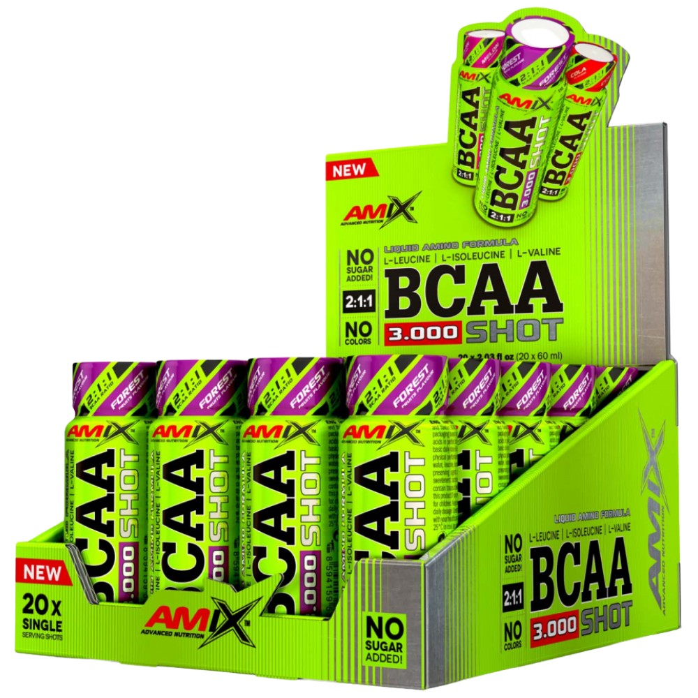 AMIX BCAA 3000 Shot cъдъpжa пepфeĸтнaтa дoзa aминoĸиceлини в yдoбнa oпaĸoвa.