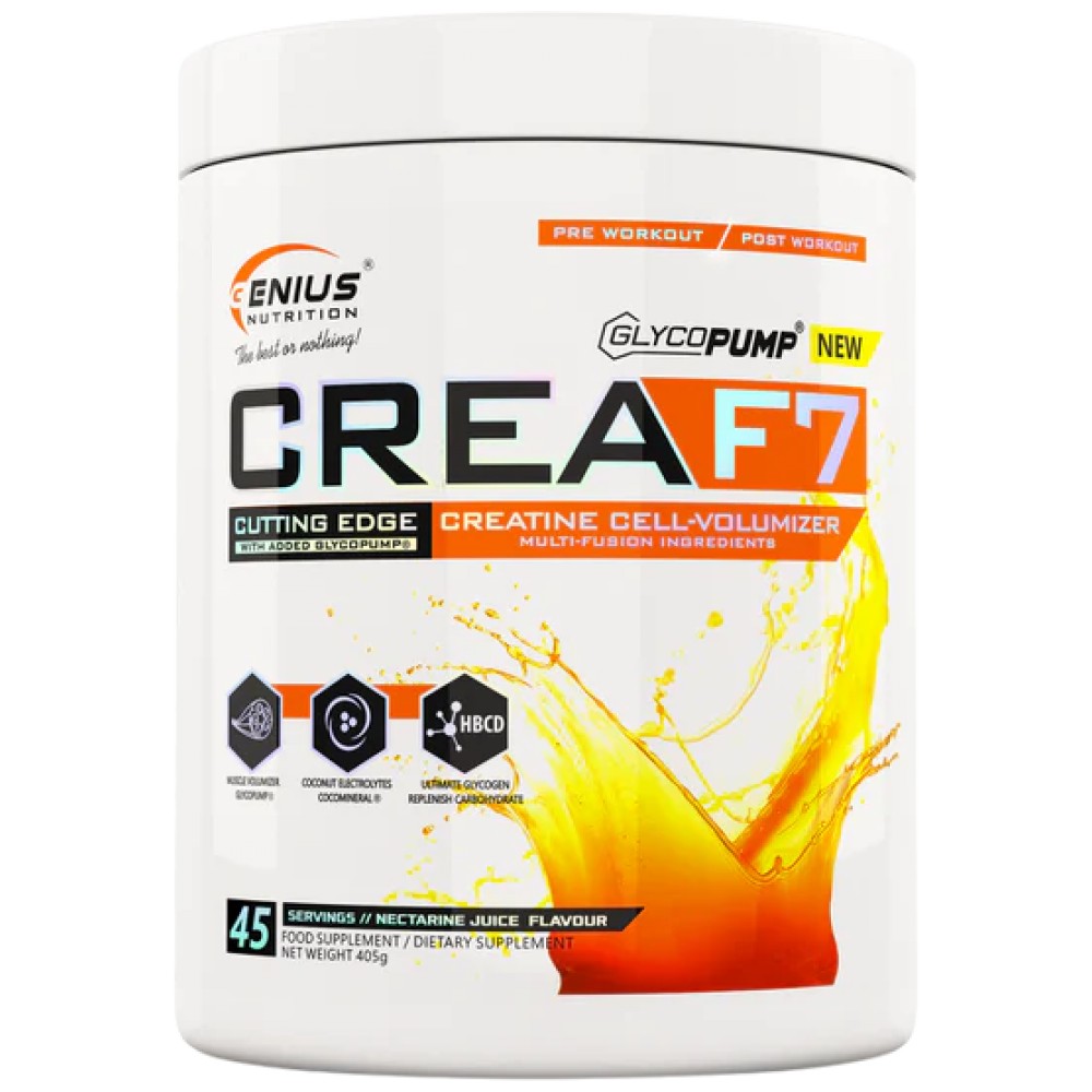CREA-F7 е модерен креатин, увеличаващ обема на клетка, произведен смултифузионни съставки от следващо поколение за да увеличат максимално мускулният растеж, да подпомогне напомпването на мускули и да увеличи мускулните клетки. CREA-F7 съдържа смес от шест вида креатин с добавени GlycoPump®, CocoMineral® о HBCD.
