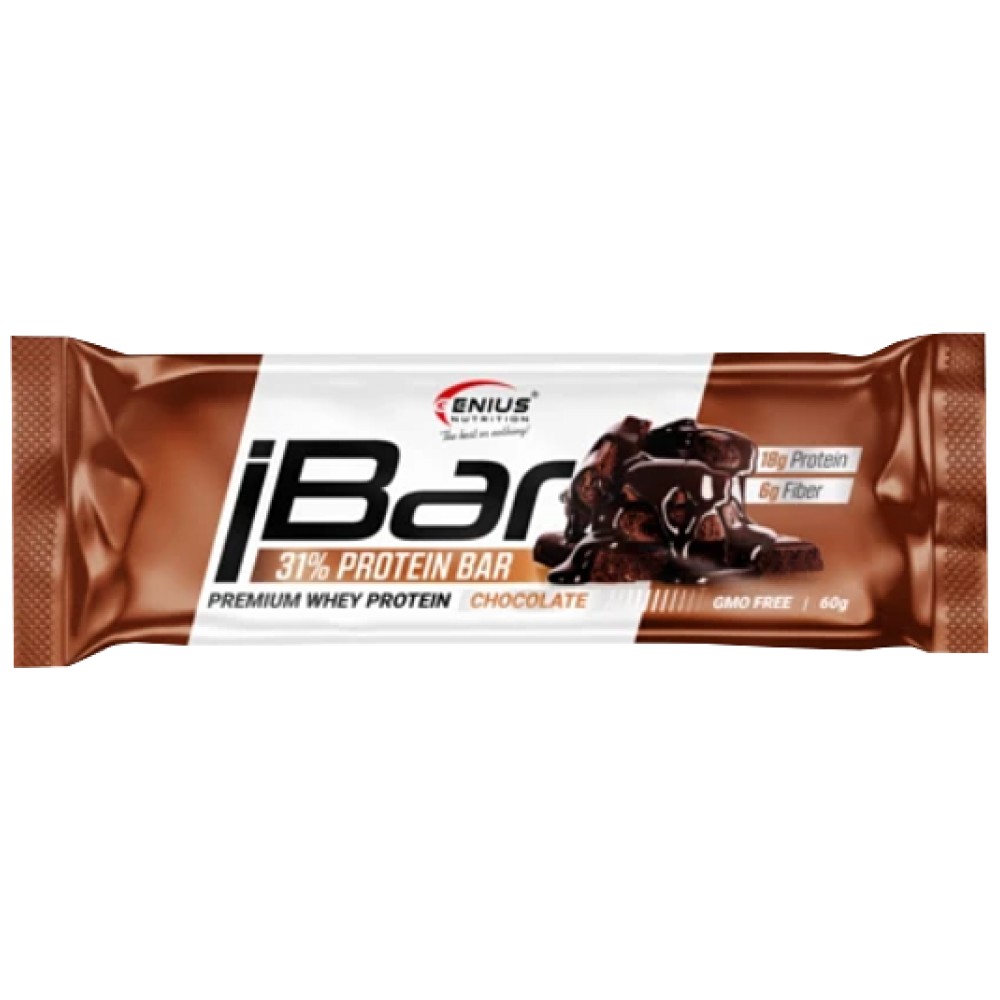 iBar от Genius Nutrition е вкусен протеинов бар, който съдържа 31-32% протеин, 217 калории, 3.5g мазнини и 27g въглехидрати, от които 8-9g захари, 6g фибри и подсладител от стевия. Перфектен за периоди преди тренировка, или когато имате нужда от закуска, богата на протеини и аминокиселини.