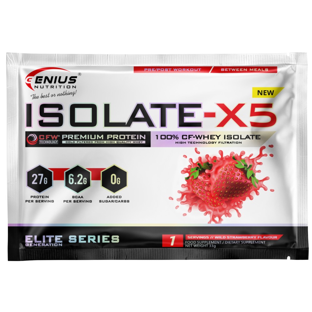 Isolate-X5® е ултра-премиум протеин, създаден за тези, които желаят да премахнат мазнините, захарта и лактозата от диетата си. Суроватъчният изолат е най-впечатляващата иновация в пречистването с помощта на естествена студена ултрафилтрация (CFW®), което прави този протеин идеален за хора, които са много чувствителни към ниски нива на лактоза, намиращи се в суроватъчни концентрати. Суроватъчният протеинов изолат съдържа големи количества естествени аминокиселини, от които тялото се нуждае всеки ден. Тъй като поддържа мускулния растеж, суроватъчният протеин е основна съставка на всеки план за хранене, без значение на вашата възраст или нивото на фитнес.
