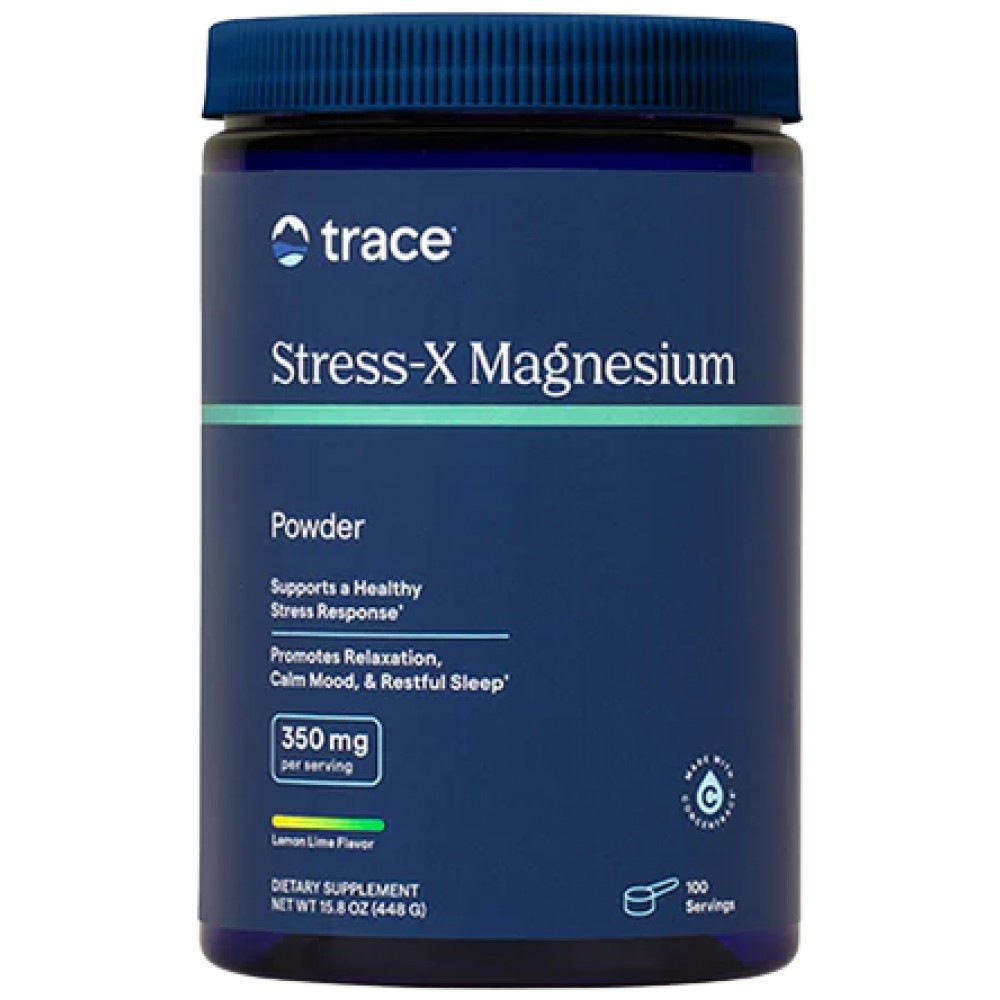 Trace Minerals Stress-X Magnesium Powder е прахообразна хранителна добавка, съдържаща 100% магнезиев цитрат. Този продукт се харектеризира с висока бионаличност, и фармацевтична микронизация, без добавени: оцветители, консерванти и овкусители.