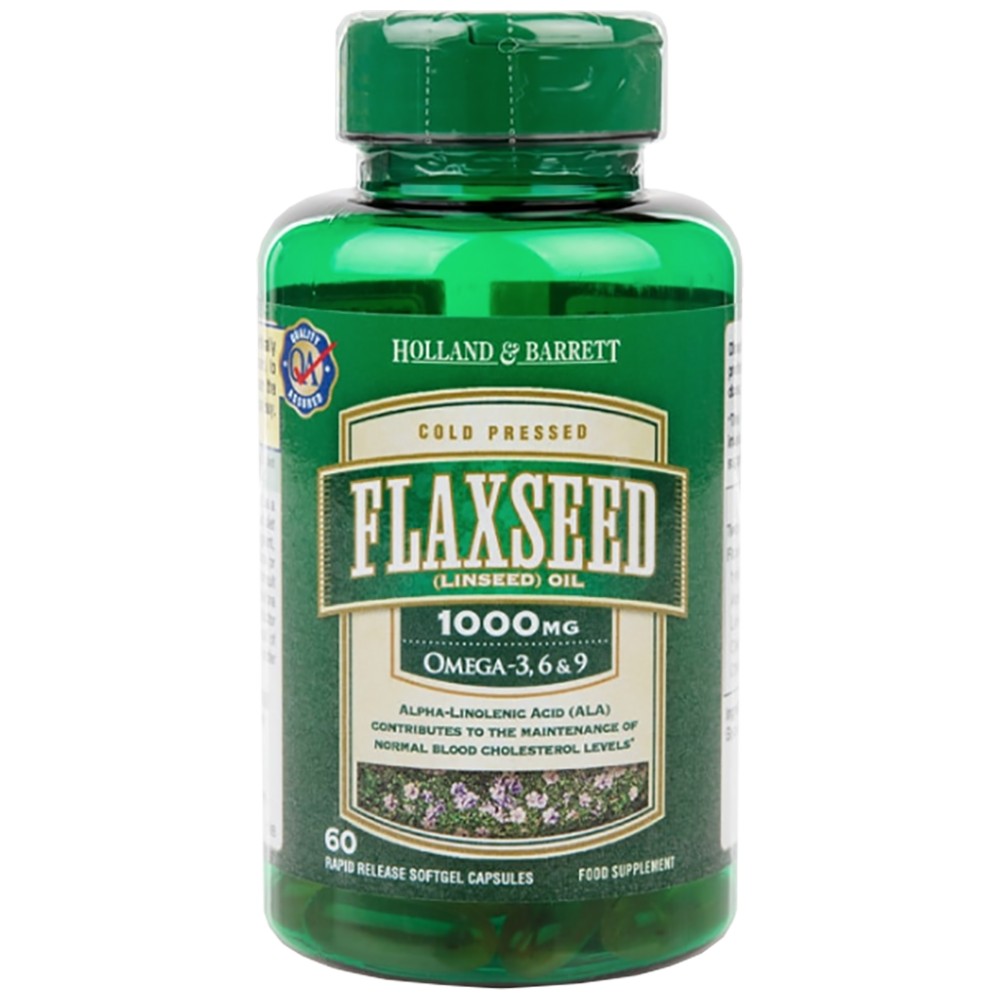 Holland And Barrett / Flaxseed Linseed Oil 1000 mg / Omega 3-6-9 е хранителна добавка съдържаща ленено масло, което е богато на полезни мазнини.