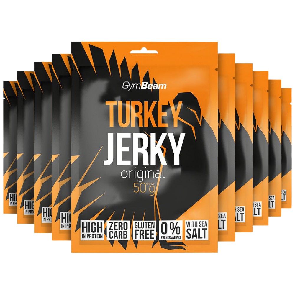 Turkey Jerky ще ви спечели още в момента, в който отворите опаковката, когато усетите апетитния му аромат, който подсказва отличния му вкус. Това сушено месо е пълно с протеини и съдържа минимум мазнини и въглехидрати. Една опаковка съдържа 38,4 g протеин, който е от решаващо значение за растежа и поддържането на мускулна маса, както и за доброто здраве на вашите кости. Този продукт се откроява благодарение на съвременния метод на сушене на месото, използван при производството му. Методът гарантира, че месото остава свежо за дълго време и запазва високите си хранителни стойности. Ще засити глада ви надеждно във всеки един момент от деня, дори ще замени вечерното похапване, като ви помогне да избегнете консумацията на нездравословен картофен чипс.