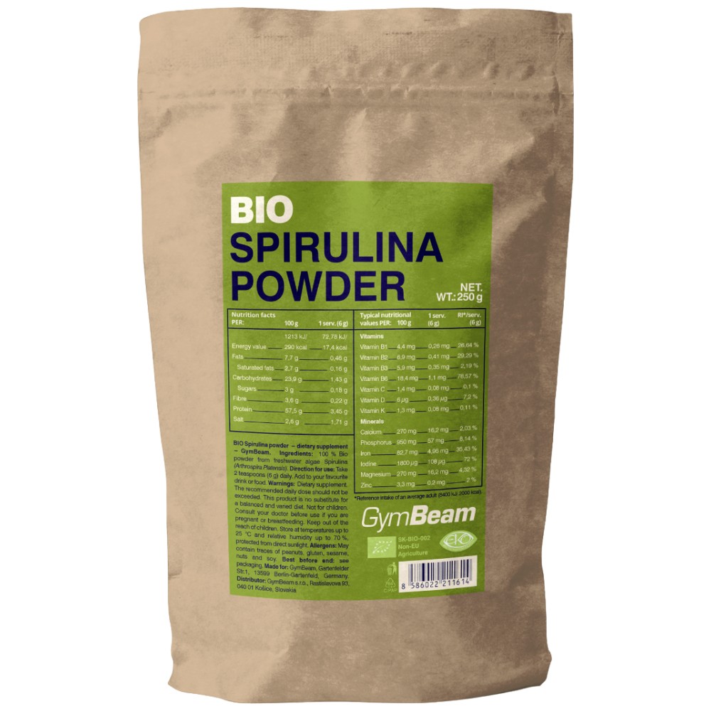 100% Био прах от сладководното водорасло спирулина (Arthrospira platensis).