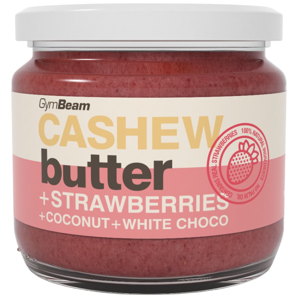 Маслото от кашу с кокос, бял шоколад и ягоди е ядково масло, приготвено от ядки кашу, които са богати на калций, рибофлавин, витамин Е и полезни за здравето мазнини. Вкусното масло от кашу е обогатено с бял шоколад, кокос, а изключителният му вкус се дължи на съдържанието на 10% лиофилизирани ягоди. Те са преминали през процес на лиофилизация, т.е. сушене чрез замразяване, така че са пълни с хранителни вещества, витамини и минерали.