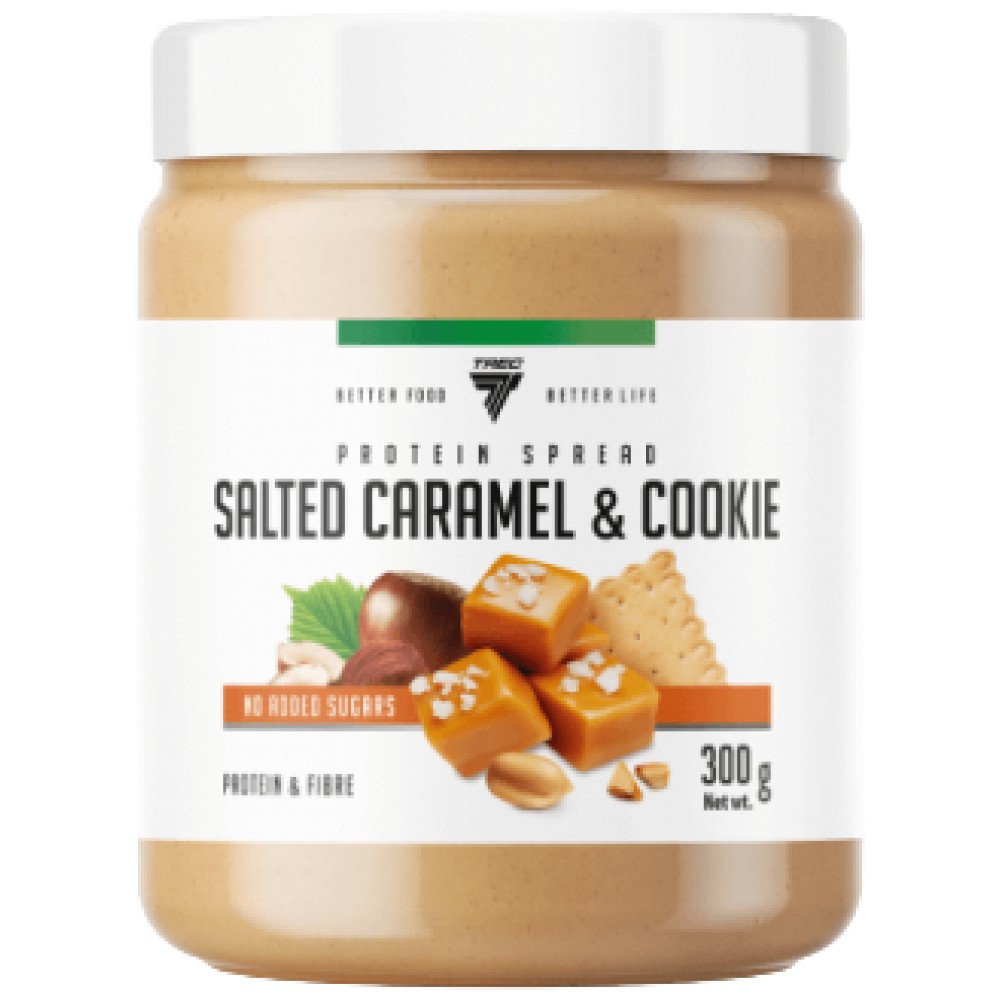 Trec Protein Spread Nut & Cookie е протеинова мазнина, направена от фъстъци с добавка на лешници, сладки сладки и какао.
