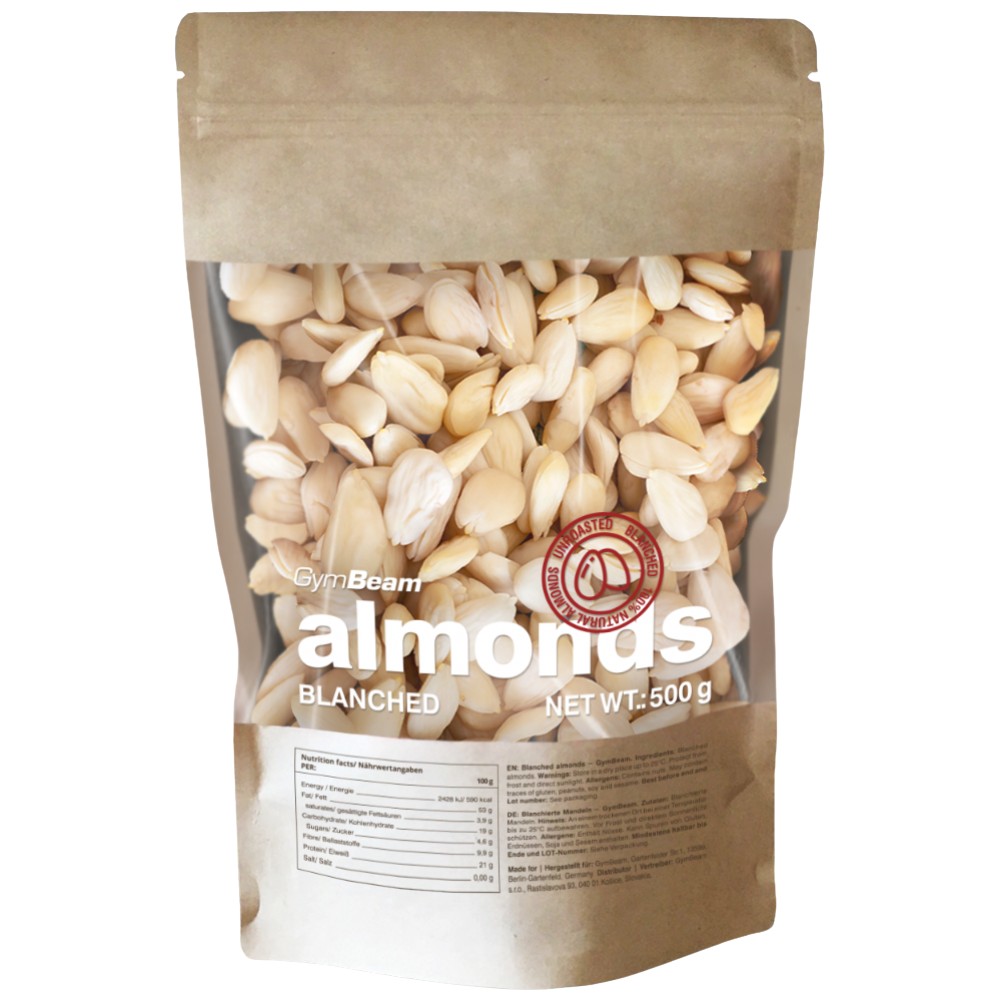 Бланшираните бадеми представляват вкусни белени ядки, които притежават мек и леко сладък вкус. Можете да поглезите себе си с тези бадеми веднага след като отворите пакета им без да трябва да ги белите. Така консумацията им е още по-удобна. Но това не е всичко. Те са много интересни и от гледна точка на хранителните стойности, тъй като са с напълно натурални съставки и са подходящи не само за вегани. Също така не съдържат сол или други добавки. Освен това са отличен източник на здравословни мазнини и протеини.