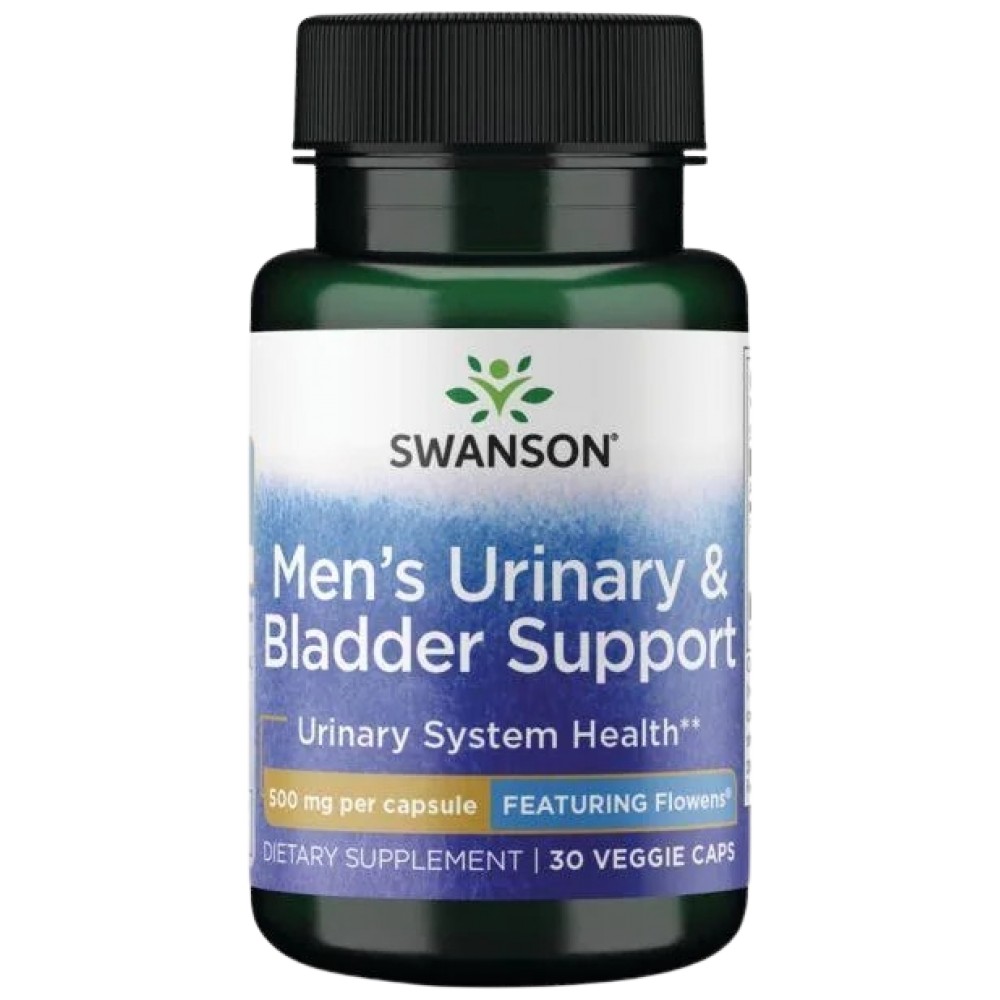 Добавката за поддържане на пикочните пътища и пикочния мехур при мъжете на Суонсън съдържа патентования екстракт Flowens®, съдържащ плодове от червена боровинка. Този продукт подкрепя здравето на простатата и поддържа нормалната честота на уринирането. Използвайки удивителните ползи за здравето на червените боровинки, Flowens® клинично доказано подобрява комфорта на пикочния мехур, което рефлектира и върху здравето на простатата. Тази патентована формула осигурява минимално обработен плод от червена боровинка с пълен спектър полезни хранителни вещества.