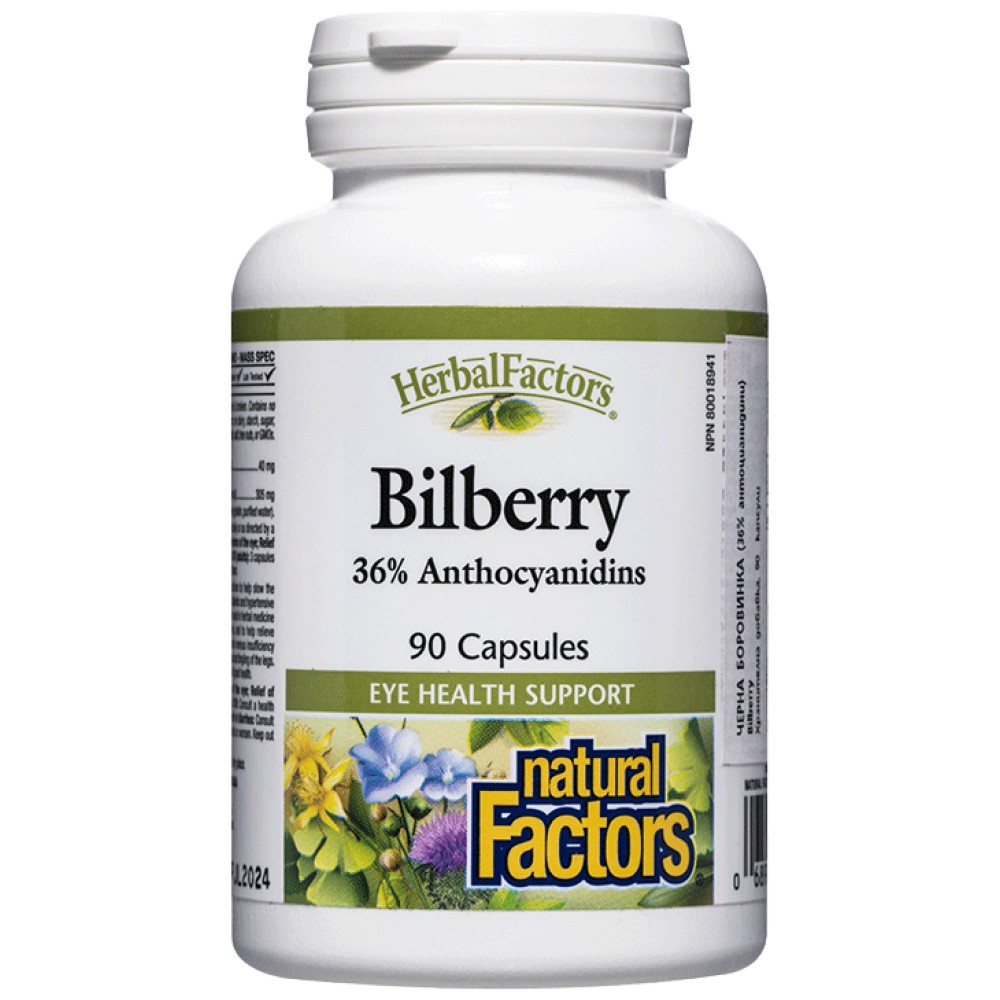 Natural Factors Bilberry 345 mg е висококачествена хранителна добавка, създадена за да поддържа здравословното зрение и да защитава очите от оксидативния стрес. Този продукт съдържа стандартизиран екстракт от черна боровинка (Vaccinium myrtillus), който е богат на антоцианини – мощни антиоксиданти, известни с благотворното си въздействие върху очите. Екстрактът е прецизно формулиран, за да предостави максимална ефективност, гарантирайки, че всяка капсула доставя оптимална доза от тези полезни съединения. Natural Factors Bilberry е произведен по строги стандарти, без ГМО, глутен или изкуствени добавки, което го прави подходящ за широк спектър от потребители, които ценят естественото здраве.