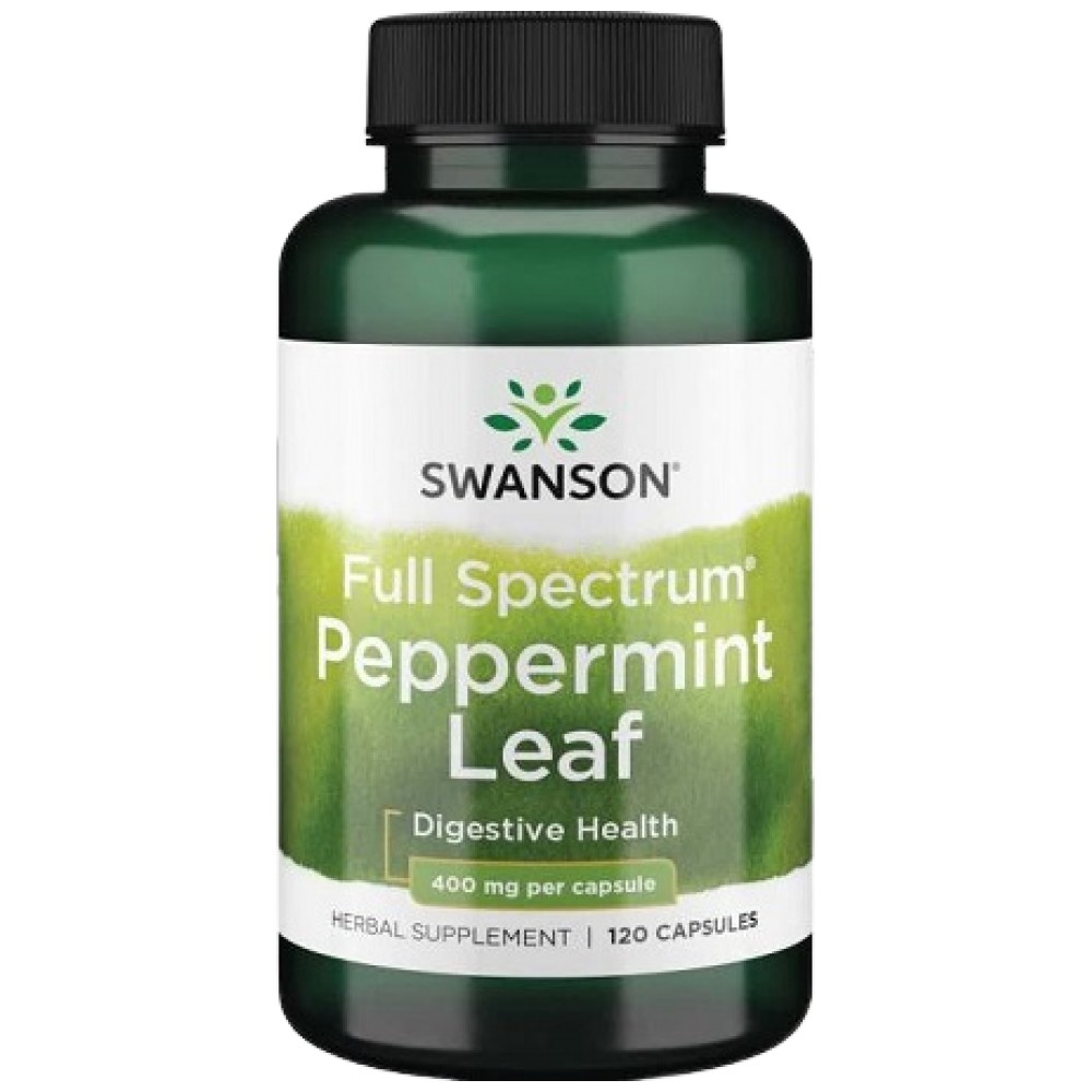 **Swanson Full Spectrum Peppermint Leaf 400 mg** е натурална хранителна добавка, съдържаща екстракт от листа на мента (Mentha piperita) – билка, известна със своите храносмилателни, освежаващи и антиоксидантни свойства.