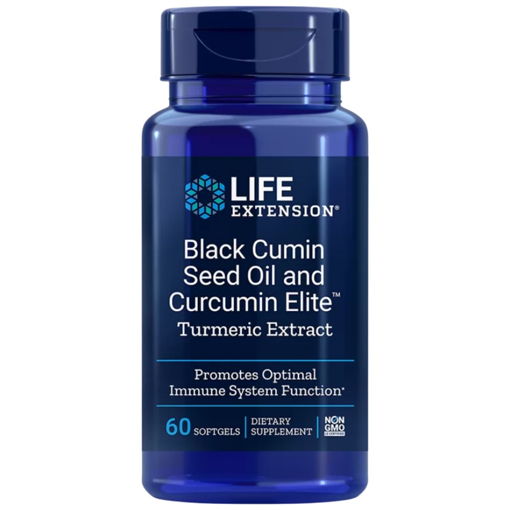 Черен кимион масло + куркумин Elite™ на LIFE Extension е високоефективен продукт, спомагащ за нормалното функциониране на имунната и сърдечно-съдовата система. Маслото от семената на черния кимион е известно с това, че допринася за поддържане на баланса в целия организъм. А екстрактът от куркума съдържа съединения, които подобряват имунитета, допринасят за потискане на възпалителните процеси и нормалното функциониране на сърцето и мозъка.