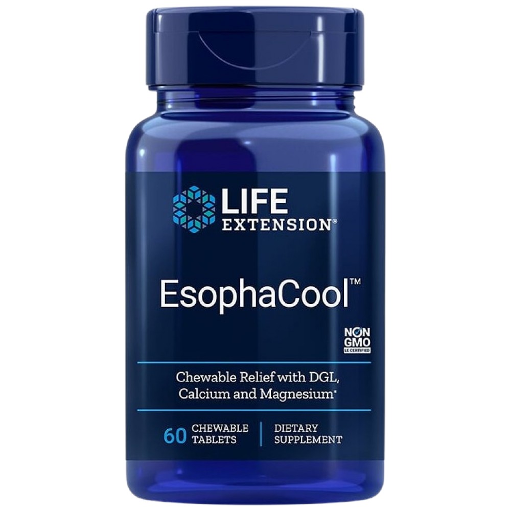 EsophaCool™ е иновативна формула за подкрепа на храносмилателната система и нейните функции. Екстрактът от корен на женско биле поддържа здравословния възпалителен отговор и насърчава стомашното здраве. Калциевият карбонат в хранителната добавка спомага за поддържането на здравословен баланс на pH на хранопровода, а магнезиевият карбонат е допълнителен източник на магнезий.