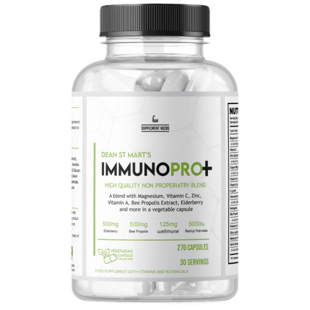 Immuno Pro+ е продукт с пълна прозрачност на съставките и без притежаване на патентовани формули, съдържащ 14 активни съставки в ефективни дози. Формулиран от Dean St Mart, този продукт е част от гама за здравето на Dean St Mart, и е създаден с цел да допълни храненето на имунната система.