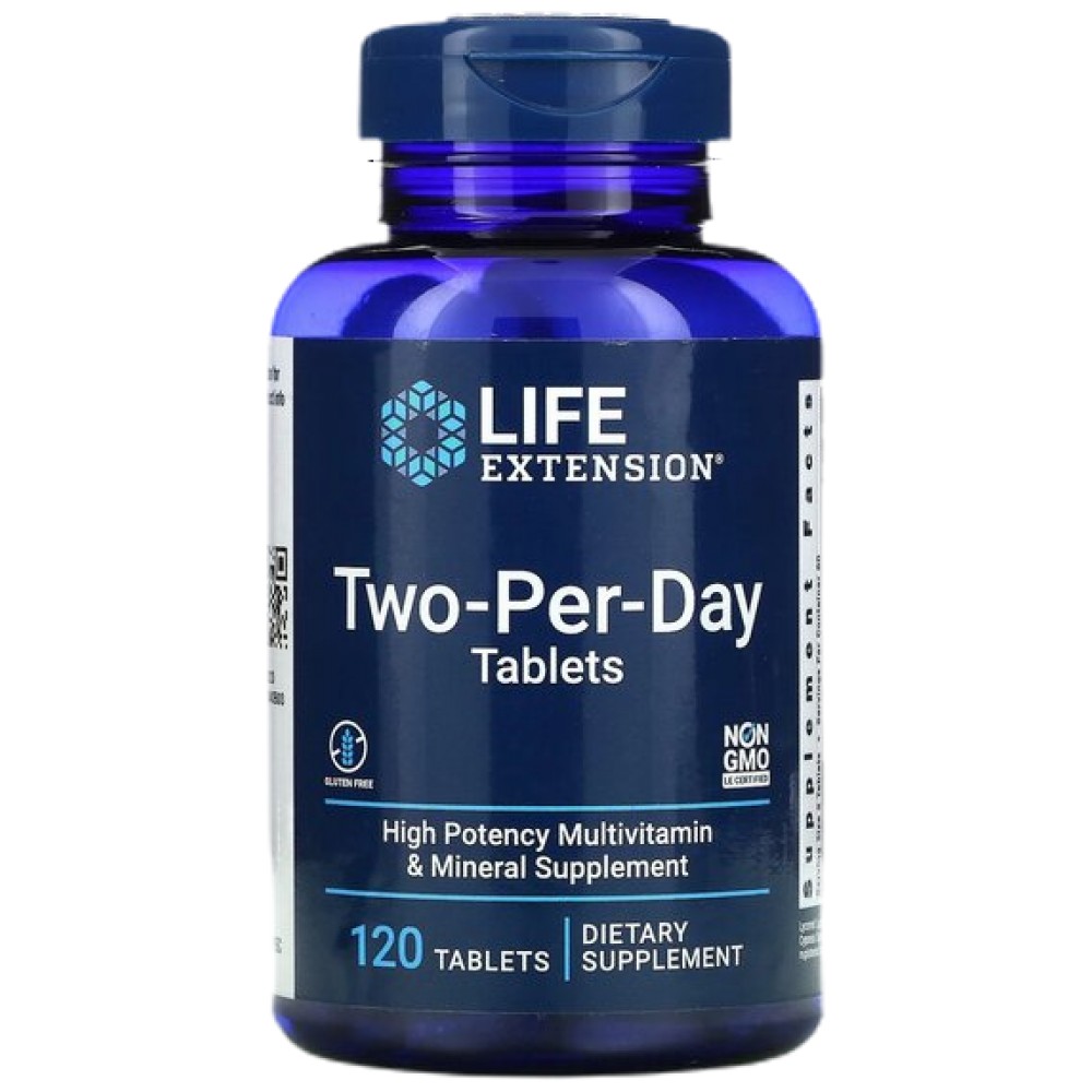 Two-Per-Day комбинира висококачествени, супер бионалични витамини, минерали, антиоксиданти и растителни екстракти, които подпомагат имунната система, увеличават енергията, поддържат здравето на нервната система и мозъка, укрепват костите и зъбите.