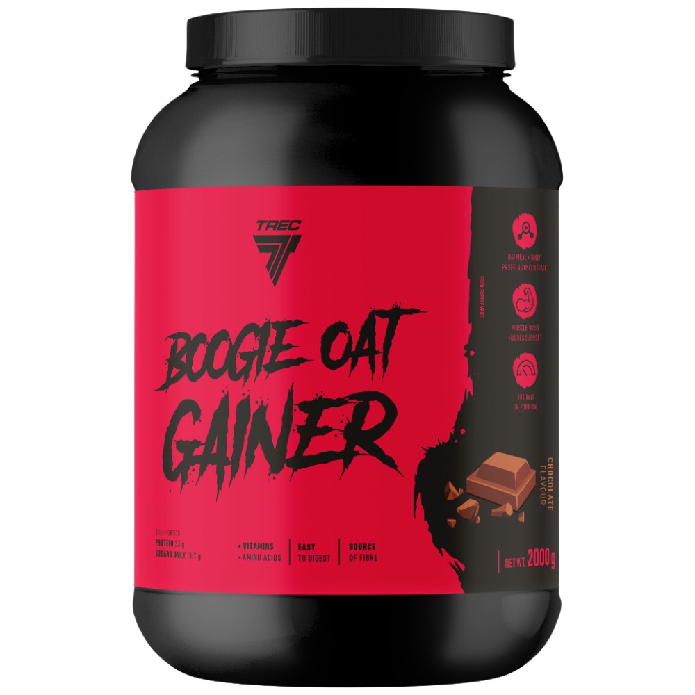 Trec Boogie Oat Gainer се характеризира се с висока хранителна, но и калорична стойност, което определено ще ви улесни в правилното балансиране на вашата диета. Формулата му се основава и на редица ценни добавки като най-важните витамини (ниацин, витамин C, B6, B12, рибофлавин, фолиева киселина и биотин), както и глицин и таурин. Всичко това в подходящо подбрани дози и взаимни пропорции. Внимателно балансираните хранителни стойности на всяка порция я правят да работи дори като заместващо хранене в спешни ситуации, напр. когато "паднеш" по хапване на път и нямаш достъп до кухнята.