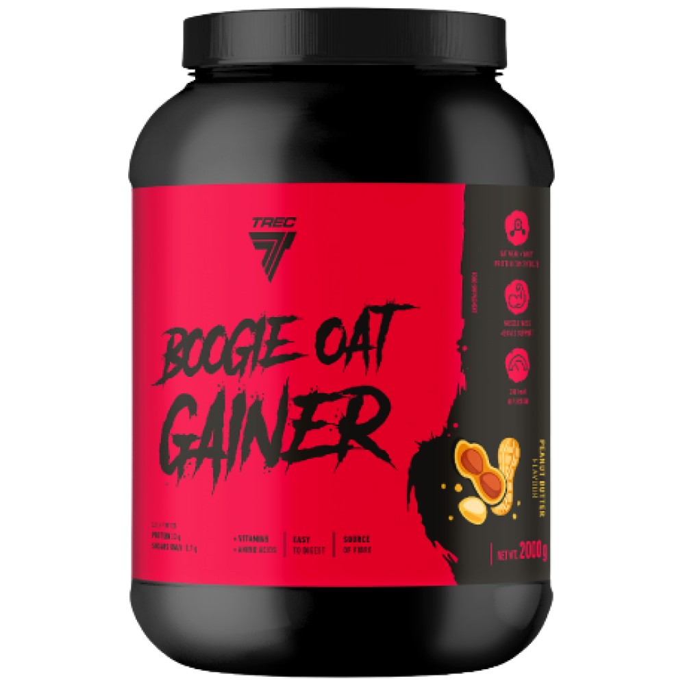 Trec Boogie Oat Gainer се характеризира се с висока хранителна, но и калорична стойност, което определено ще ви улесни в правилното балансиране на вашата диета. Формулата му се основава и на редица ценни добавки като най-важните витамини (ниацин, витамин C, B6, B12, рибофлавин, фолиева киселина и биотин), както и глицин и таурин. Всичко това в подходящо подбрани дози и взаимни пропорции. Внимателно балансираните хранителни стойности на всяка порция я правят да работи дори като заместващо хранене в спешни ситуации, напр. когато "паднеш" по хапване на път и нямаш достъп до кухнята.