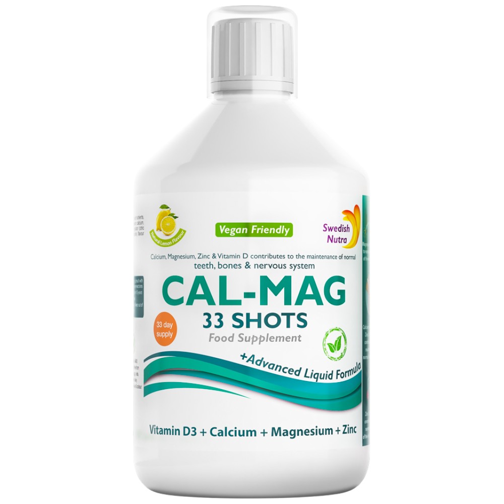 CAL-MAG 500 ML SWEDISH NUTRA съдържа калций и магнезий, които поддържат функцията на скелета и мускулите. Витамините, минералите и микроелементите са важни за много функции в тялото. Самото тяло не произвежда всички микроелементи, така че те трябва да се доставят чрез храната. Cal-Mag от Swedish Nutra съдържа съставки, които спомагат за поддържането на здрав скелет и здрави зъби. Скелетът се обновява през целия живот, така че е важно да осигуряваме на тялото редовно калций, за да поддържаме нормален скелет. Нашата уникална формула Cal-Mag е подсилена с калций, магнезий, витамин С, витамин D и цинк, за да помогне за поддържане на здрави зъби, кости и нервна система.
