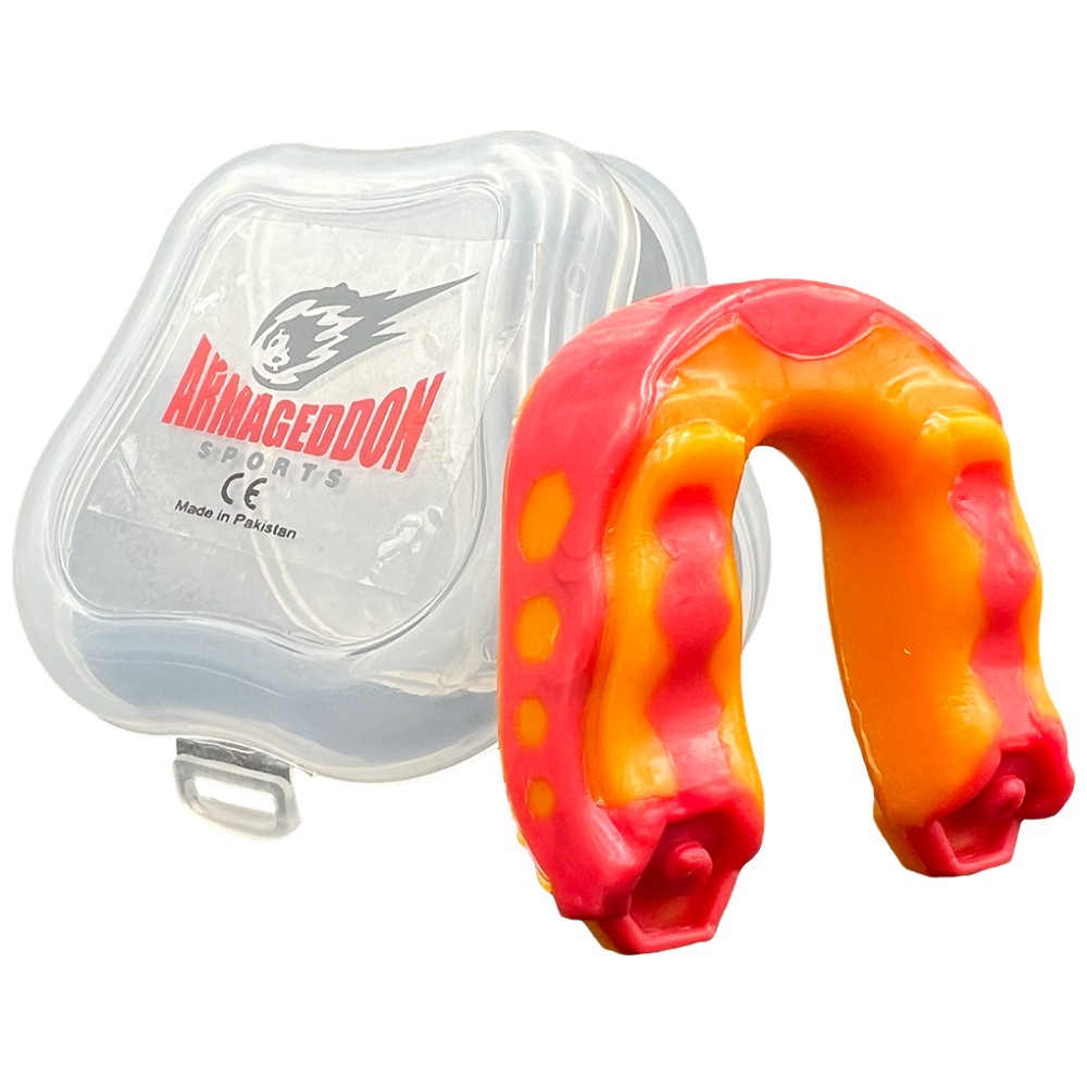 → ОПИТАЙ НАЙ-ДОБРОТО: Протекторите за уста се носят с цел предотвратяване счупване на зъбите, прехапване и други травми при контактните спортове. Представяме Ви Единичен протектор за уста Armageddon Sports, изработен от специален силикон. Размерът е универсален и е подходящ за възрастни. Предлага се с кутийка за съхранение, в която ще бъде предпазен от мръсотия и бактерии.