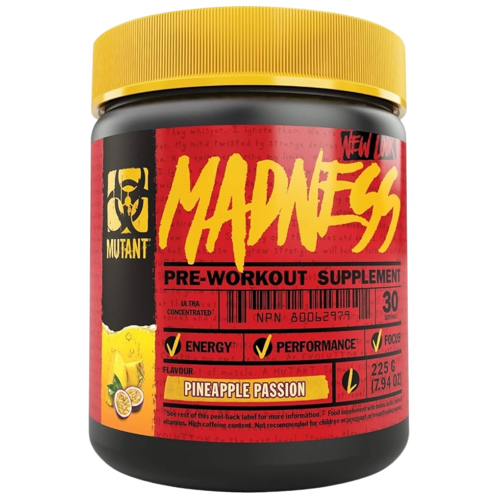 Mutant Madness е изключително мощна предтренировъчна формула, създадена да ви осигури интензивна енергия, фокус и издръжливост. Този продукт е специално разработен за хора, които искат да надминат своите граници и да постигнат върхови резултати във фитнес залата. С уникална комбинация от активни съставки, включително бета-аланин, L-цитрулин и мощна доза кофеин, Mutant Madness ви подготвя за тренировки, които ще надминат всички ваши очаквания.