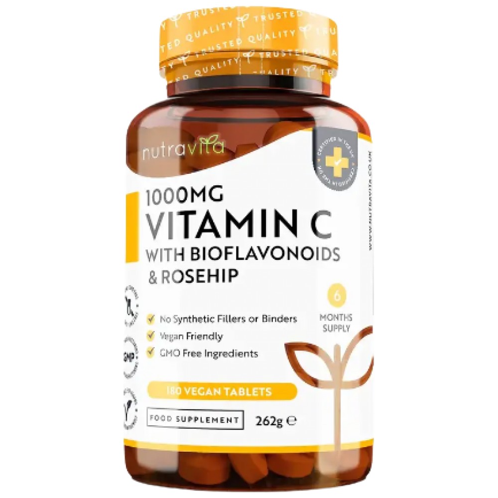 Нашата добавка съдържа 1000 mg витамин С на таблетка и 20 mg цитрусови биофлавоноиди и 20 mg шипка на таблетка. Това е доставка за 6 месеца!