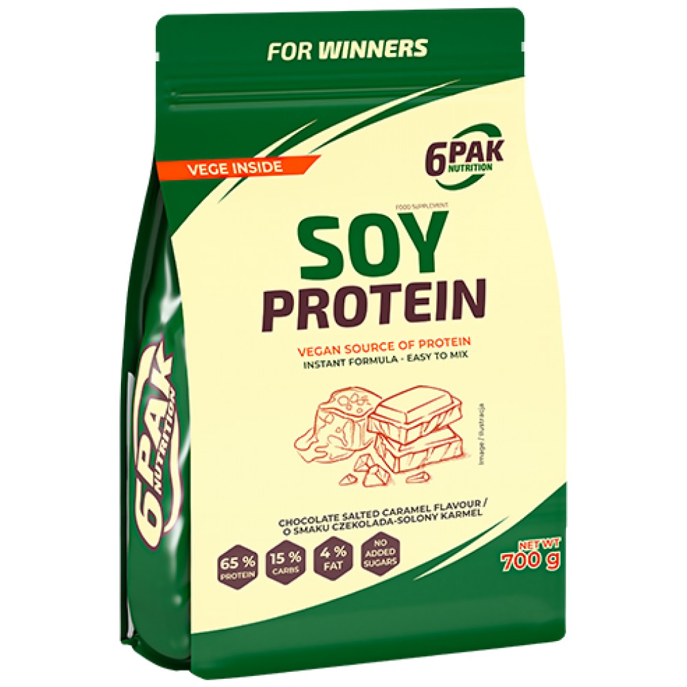 🌱 6PAK Soy Protein е висококачествен растителен протеин, произведен от соев изолат, идеален за хора, които избягват животински продукти или търсят алтернатива на традиционните протеини. Отличава се с високо съдържание на протеин и пълен аминокиселинен профил, включително всички незаменими аминокиселини. Подходящ е както за възстановяване след тренировка, така и за допълнение към балансирано хранене.