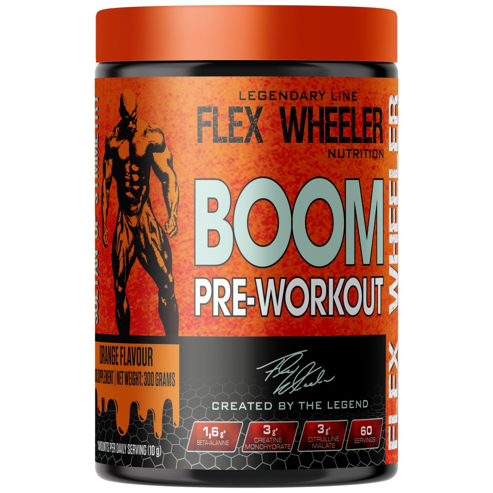 BOOM Pre-Workout Formula е част от Flex Wheeler Signature Series, марка, създадена от една от най-големите легенди в света на културизма, Flex Wheeler. Тази серия от добавки е предназначена да осигури максимални резултати за сериозни атлети и хора, които търсят интензивност и ефективност в своите тренировки.