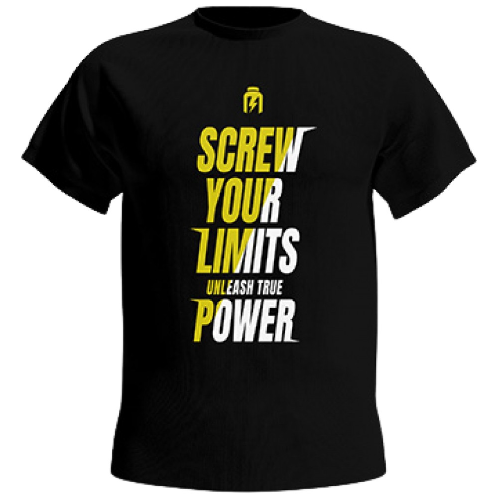 Надписът **"Screw Your Limits"** не само вдъхновява, но и привлича погледите – изявление за вашия стремеж да преодолеете всички бариери. Тази тениска е създадена за хора, които искат да мотивират себе си и другите, докато поддържат стил и увереност.