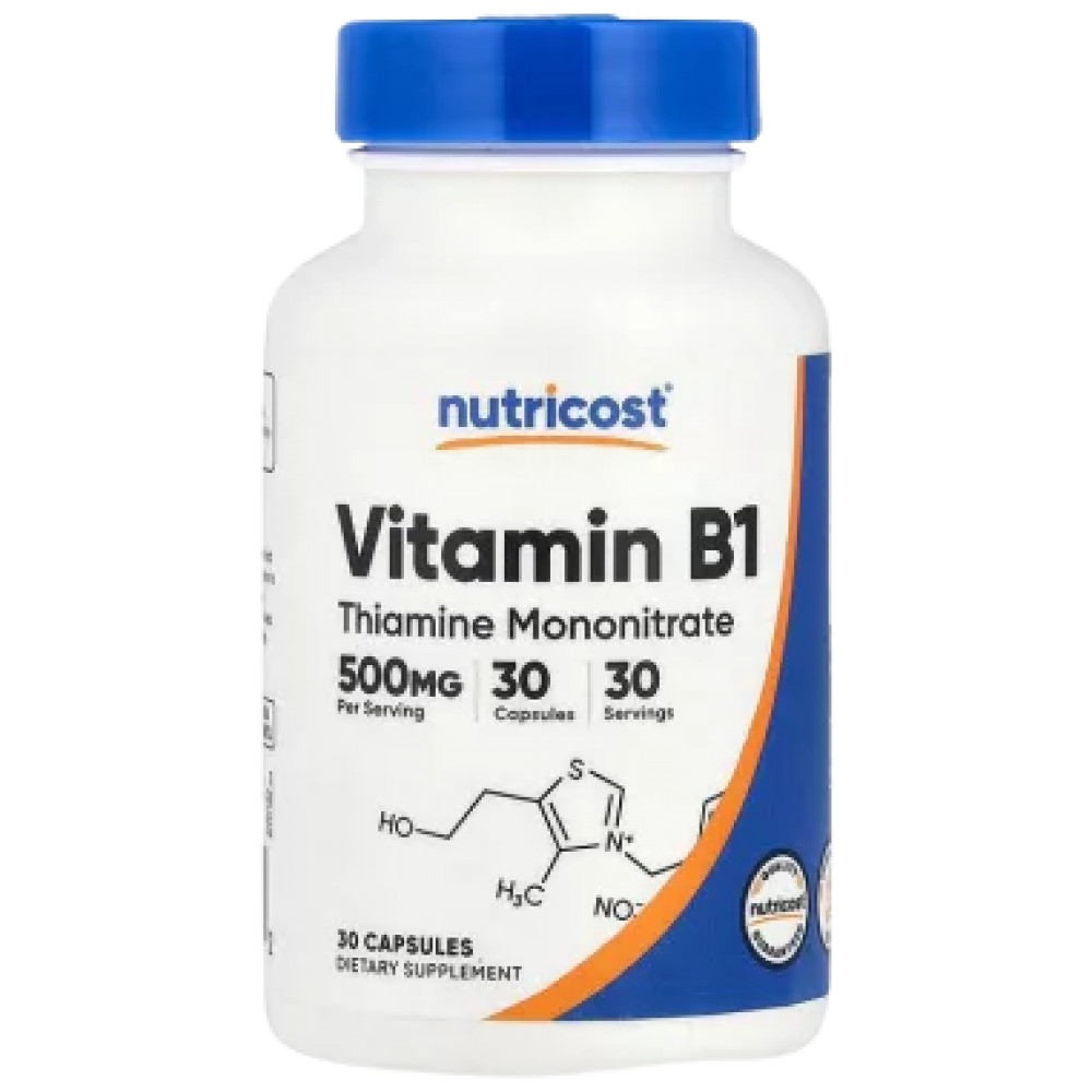 Nutricost Vitamin B1 (Thiamine Mononitrate) 500 mg е вашият съюзник за поддържане на здравословна нервна система, оптимален метаболизъм и висока енергия. Тази хранителна добавка съдържа чиста форма на витамин B1, известен още като тиамин, който играе ключова роля в енергийните процеси на организма. Тиаминът е необходим за синапсите на нервните клетки, подпомага метаболизма на въглехидратите, което води до производство на АТФ - основният източник на енергия за клетките. Nutricost Vitamin B1 е разработен за хора, които търсят да поддържат или подобрят своето здраве, особено при условия на стрес, натоварен начин на живот или при диети, които могат да бъдат дефицитни по този витамин. Този продукт е без ГМО, без глутен, и е произведен в съответствие с високите стандарти за качество, което го прави подходящ за всеки, който цени чистотата и ефективността в храненето си.