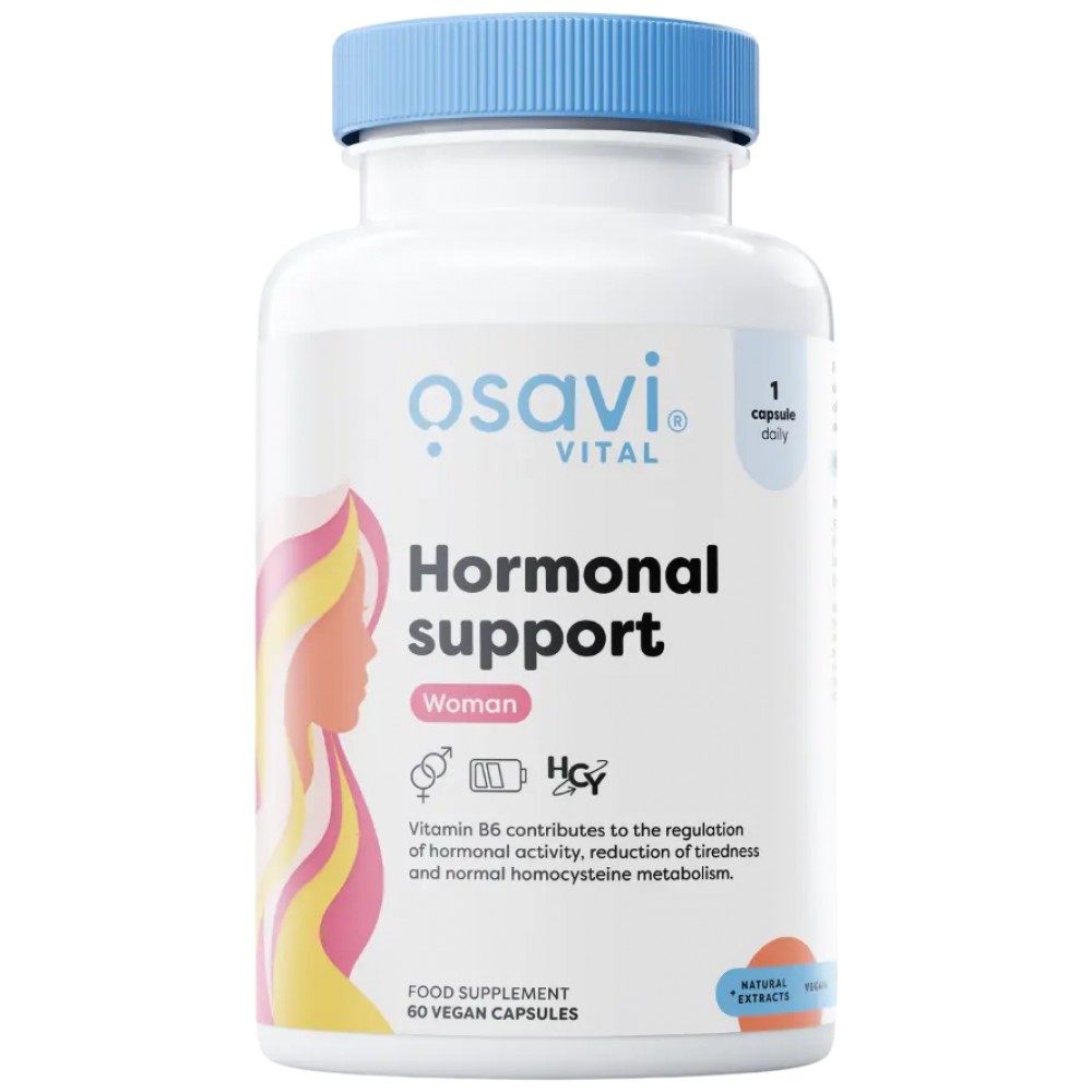 Osavi Hormonal Support Woman е специално формулиран хранителен продукт, създаден да поддържа хормоналния баланс при жени. Със своите активни съставки, този продукт помага за регулиране на хормоналните нива, като осигурява подкрепа на ендокринната система, намалява симптомите, свързани с хормоналните колебания, и повишава общото благосъстояние. Идеален е за жени, които преживяват различни фази от живота си, като менструални цикли, пременопауза или други хормонални промени.