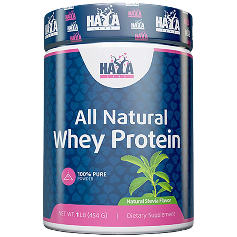 100% Pure All Natural Whey Protein Stevia от американската компания за хранителни добавки HAYA LABS е неовкусен суроватъчен протеин концентрат, съдържащ единствено натуралния подсладител Стевия.