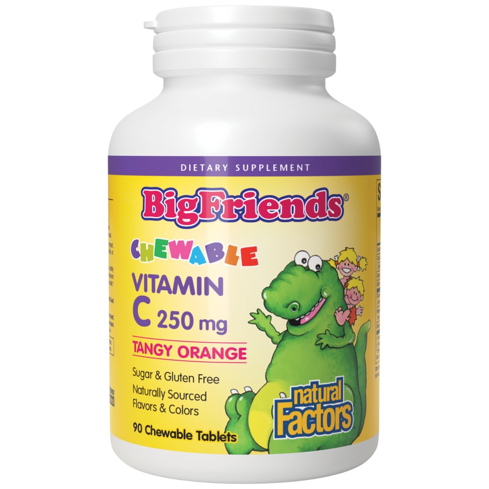 Natural Factors Big Friends Vitamin C Kids е създаден за малките герои, които търсят витаминно подкрепление в забавен формат. Този продукт предлага витамин C в дъвчащи таблетки с вкус на тропически плодове, които не само че са вкусни, но и користни за здравето на вашето дете. Витаминът C е съществен за поддръжката на имунната система, здравето на кожата, костите и съдовете, и е ключов антиоксидант. Таблетките са направени без изкуствени ароматизанти, бои или консерванти, осигурявайки естествена и безопасна добавка за децата.
